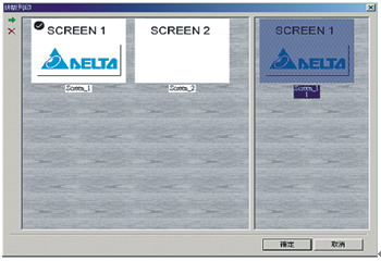 將預排版打印畫面拖拉至右邊框中,如需要移除直接點擊右框中需刪除頁號按DEL鍵,即可刪除。可選擇多頁打印,但排版好的打印畫面無法顯示于人機界面,因此須注意,若畫面已被選擇為排版打印畫面時,換畫面按鈕無法選擇此畫面(編譯出錯)。