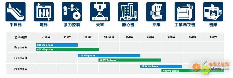 大慣量負載:離心機、工業(yè)洗衣機、粉碎機、龍門型工具機…等 四象限負載:電梯、油田抽油機、起重機械…等 要求快速制動:機床、制袋機、自動倉儲、沖床…等 長時間回饋能量:印刷機械、手扶梯…等
