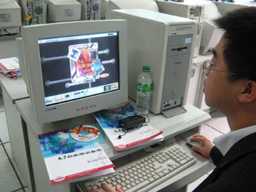 學員們每人一臺電腦,參看教材在王建軍工程師的細致指導下認真地學習。 |