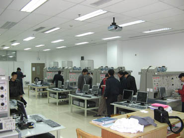 學員們在重慶大學實驗室實際操作PLC設備 |