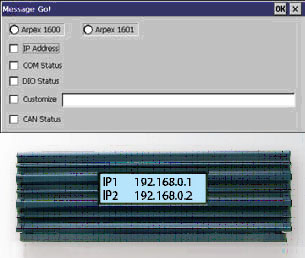 Arpex系列整合泛用控制盒(Universal Embedded Box PC)與液晶顯示模塊 (Liquid Crystal Display Module;LCM),并搭配Message Go監控軟件,LCM顯示窗依據使用需求顯示相關數據,避免須藉由計算機主機端才能得知使用狀況的麻煩與不便,簡化控管作業并提升控管效率,此為泛用控制盒應用中的創新設計。