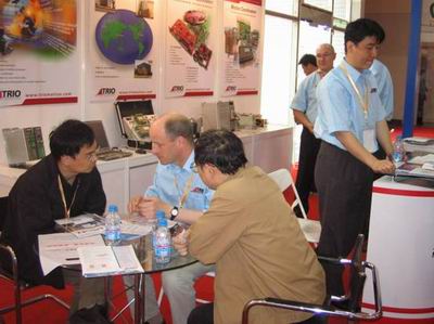 全球的SERCOS協會高度重視SERCOS配合TRIO運動控制器在各個領域的應用,在IAC2006展會期間SERCOS全球協會主席Mr. Peter Lutz曾親臨TRIO展臺予以指導.