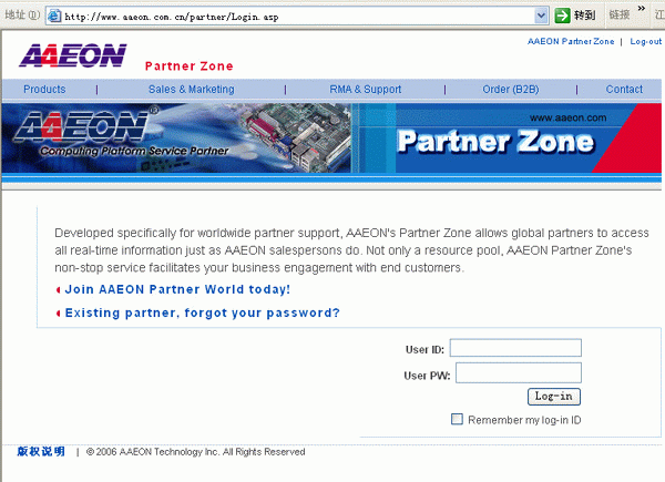 www.aaeon.com.cn 網站首頁右上方創建了一個全新的伙伴天地(