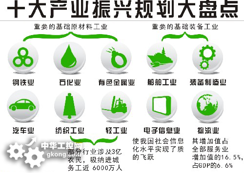 會議指出,為應對國際金融危機,2009年初國家從緩解企業困難和增強發展后勁入手,相繼制定出臺了汽車、鋼鐵、電子信息、物流、紡織、裝備制造、有色金屬、輕工、石化、船舶等十大重點產業調整和振興規劃,分別提出了上百項政策措施和實施細則,對保持國民經濟平穩較快發展起到了重要作用。隨著政策措施逐步到位,重點產業下滑態勢得到遏制,整體企穩回升,企業重組穩步推進,淘汰落后產能力度加大,企業技術進步明顯加快。