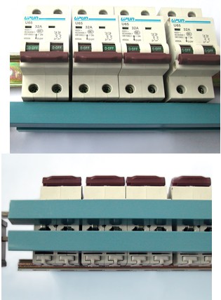 公司研發(fā)生產(chǎn)的UP2系列匯流排于2011年5月榮獲國家發(fā)明專利,該產(chǎn)品目前屬國內(nèi)首創(chuàng)。產(chǎn)品由條狀的絕緣槽構(gòu)件、壓線框、匯流體等構(gòu)成。利用一個壓線框起固定作用,一個緊定螺釘穿過壓線框,將接頭片固定,接頭片的一端穿過通孔并位于匯流體與緊定螺釘之間,接頭片的另一端位于絕緣槽構(gòu)件的外側(cè),結(jié)構(gòu)緊湊,可方便壓線框安裝。接線快捷,壓線可靠無虛接或壓不牢的現(xiàn)象。從而提高了產(chǎn)品的安全性、可靠性,填補了國內(nèi)市場的空白。