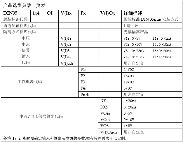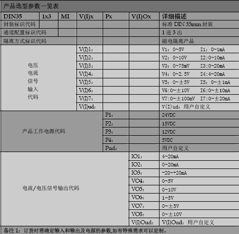 信號隔離變送器選型說明圖: