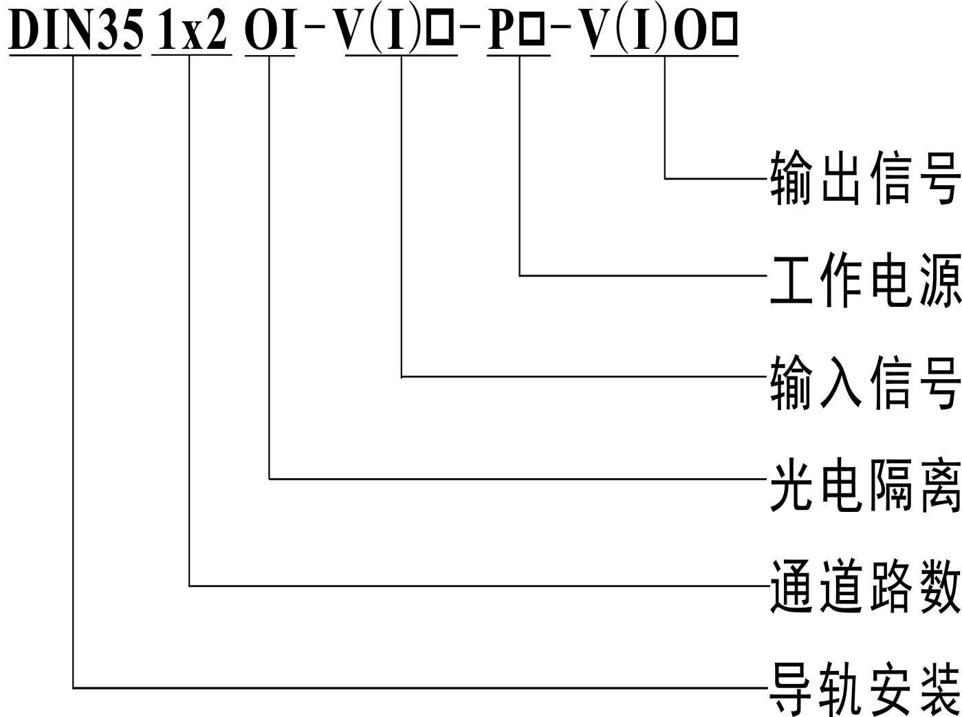 工作電源:12VDC; 產品型號:DIN35 1x3 OI-V2-P3-VO4