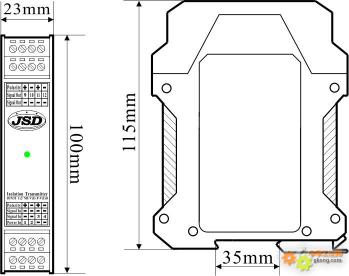 深圳捷晟達科技的DIN35 1x2 MI-V(I)x-Px-V(O)x有源單通道輸入雙通道輸出高精度模擬量信號隔離變送器,是將輸入與輸出之間電氣絕緣的模擬信號進行變換、放大、隔離的信號調(diào)理器,接收現(xiàn)場儀表的各種模擬量信號輸入,通過模擬量信號隔離變送器進行信號變換調(diào)理,以標準模擬量信號的形式或者用戶指定的特殊的模擬量信號傳輸?shù)娇刂剖摇LC、PC及DCS系統(tǒng)。本產(chǎn)品的輸入、輸出、工作電源間相互隔離,采用新型隔離措施不但使輸入、輸出、工作電源間隔離,也使該產(chǎn)品各通道之間相互隔離,隔離電壓高達2500VDC,該產(chǎn)品在電量隔離測控的工業(yè)測現(xiàn)場、電力監(jiān)控、醫(yī)療電子設(shè)備、模擬量信號隔離及采集等方面廣泛應(yīng)用。該模擬量信號隔離變送器采用電磁隔離技術(shù),相比光耦信號隔離變送器具有更好的輸出精度、溫飄特性小和線性度好,適合在震動,潮濕的工業(yè)現(xiàn)場,標準DIN35mm導(dǎo)軌安裝方式,方便用戶安裝等
