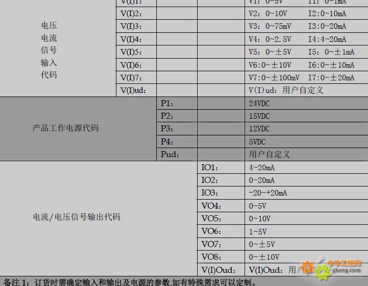 信號隔離變送器選型表: