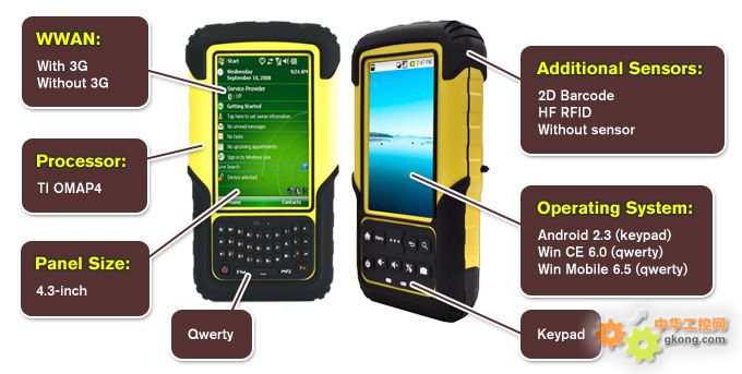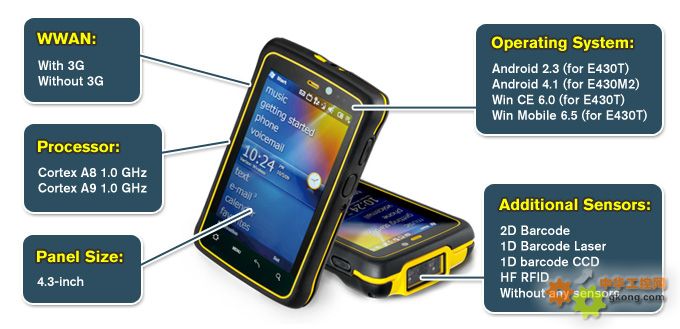 京融電在手持設備方面,專注于3.5到4.3尺寸且擁有與手持設備完美搭配之標準功能,京融電為了滿足客戶的需求,因此我們采用多種數據采集部件(可選的條形碼、RFID感光器、可選3G以及多種操作系統的配置),京融電將致力提供客戶所想要的設備如: