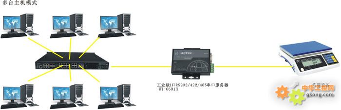 許多情況下多個用戶需要共享來自同一串口的數(shù)據(jù)資源,此時需要多臺主機能夠訪問同一串口設(shè)備聯(lián)網(wǎng)服務(wù)器。UT-6601H能夠根據(jù)用戶的需求工作在這種工作模式,允許多臺主機分時訪問同一串口。