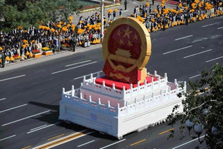 在國慶慶典的盛大閱兵式上,最引人矚目的莫過于國徽方隊的國徽彩車,國徽彩車隨著正步儀仗方陣隆重亮相,這是國慶游行彩車隊伍中唯一的一輛純電動車。