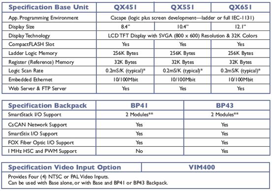 QX有3種尺寸的屏幕(8.4”,10.4”.12.1”),邏輯掃描速率為0.2ms/k。另外,QX內置以太網,支持多種互聯網功能,例如遠程數據訪問,編程,HTML Web頁面,和FTP站。另外,內置的CF插槽可以使用戶易于存儲設備或過程數據(最大可達2G)。對于OEM商和現場支持人員有絕對的優勢,因為程序可以通過CF卡很容易的更新下載。