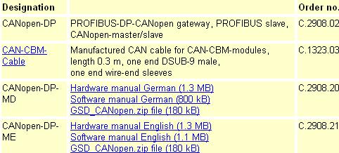 *CANopen-DP simulates a PROFIBUS-DP-slave with up to 244 bytes data input and 244 bytes data output