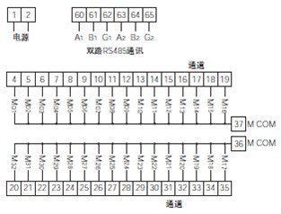 無源干接點(diǎn):Pi(i=1-32)與公共端PV12為各通道接入端,同時(shí)PCOM和PG短接。