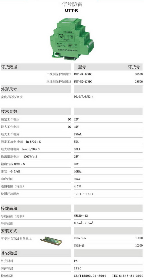 UTT-K 信號防雷電涌保護器
