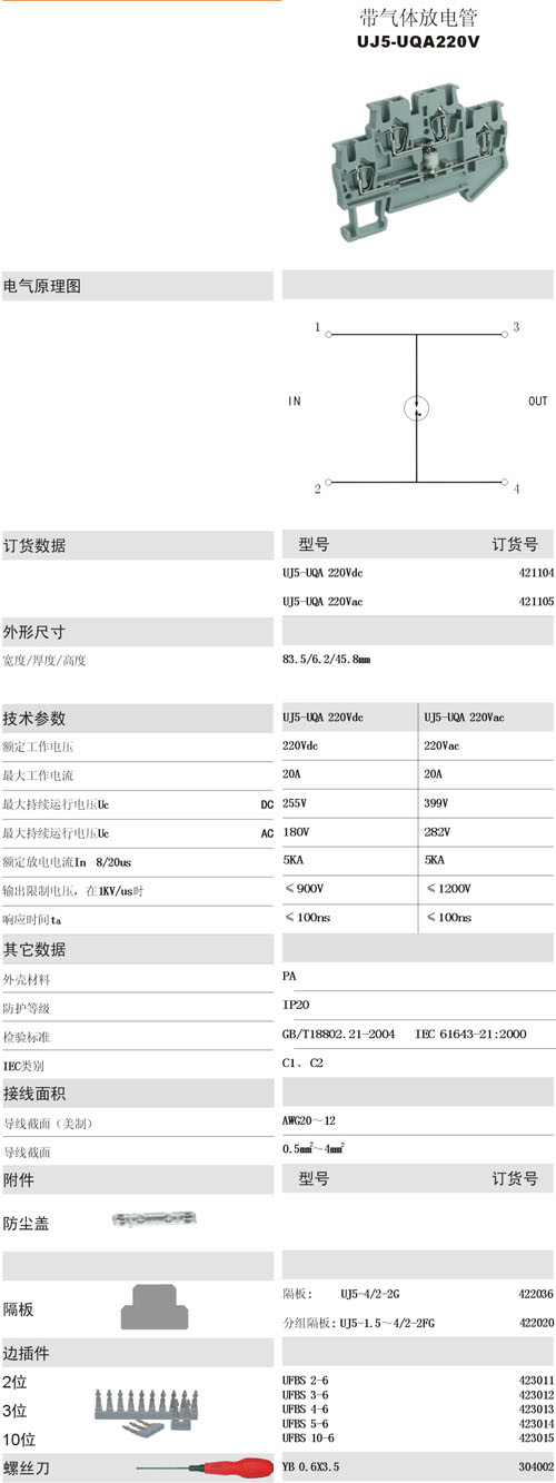UJ5-UQA220V 籠式彈簧接線端子排