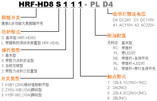 操動機能→基本型、自鎖交替型、三位置操動型、安全型、踏板防誤動作型。 附加機構→可選“藍寶石指示燈”、便攜提桿、急停開關、多色標記板。 |