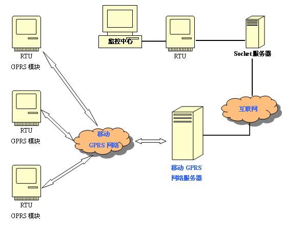 由于已有RTU和上位機軟件都是基于串口通訊的,而GPRS是基于網絡通訊,所以無論對于RTU和上位機來說都需要改動通訊方式,即需要對RTU和上位機軟件進行修改。 |