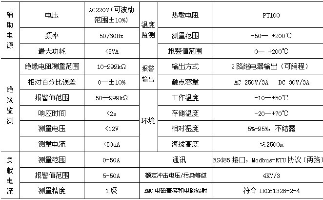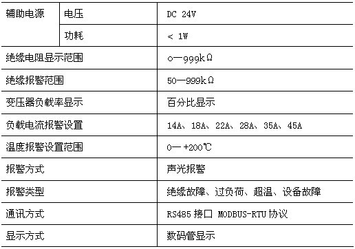 ◆ 具有對被監測IT系統對地絕緣電阻、變壓器負荷電流、變壓器繞組溫度實時監測與故障報警功能;