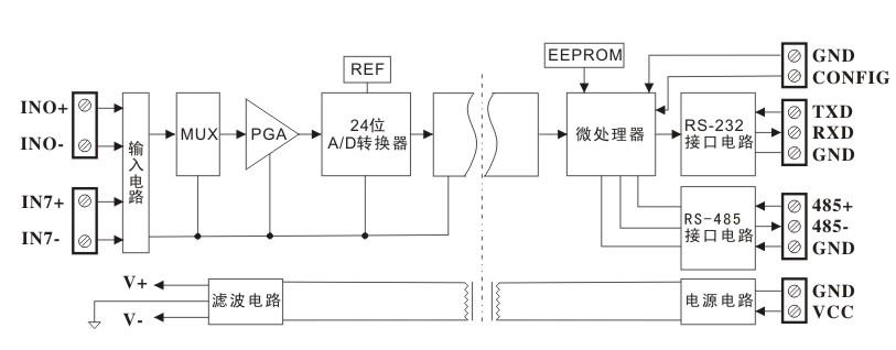 圖1 SYAD08T 產品原理及外接端子框圖