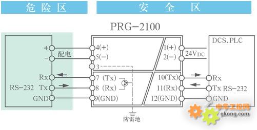 PRG-2100 RS232(全雙工)隔離式安全柵實現RS232數字信號在危險區和安全區的雙向通信,并向現場儀表提供電源。該產品需要獨立供電,電源、輸入和輸出三隔離。