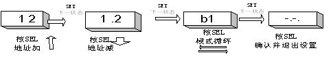 改波特率狀態、-.-.。其中-.-.為退出提示。需要修改對應參數時,在顯示該參數后按下SEL,可以循環改變對應值,流程示意見下圖。