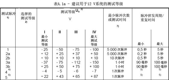 ISO-7637-2:2004標準指定測試了客車以及安裝12 V或24 V電氣系統的商用車輛中設備的電瞬態傳導的兼容性。抗瞬態失效程度的等級也有定義。該標準適用于所有安裝電氣系統的道路車輛,不受推進模式的約束。