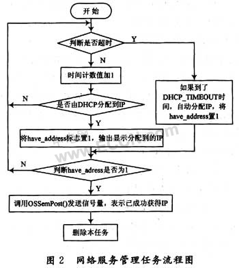 (2)網絡DHCP服務管理任務:主要用來檢查DHCP服務是否成功,即系統是否成功分配到IP。該任務在完成后也自動刪除。任務流程圖如圖2所示: