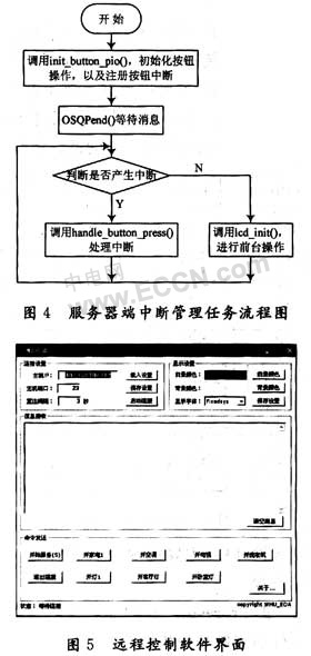 (4)服務器端中斷管理任務:主要在服務器端處理用戶產生的各種中斷,然后向客戶端發送相應命令執行對應操作。任務流程圖如圖4所示。