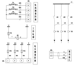該儀表主要監測電流大于63A的回路。儀表不需要工作電源,功耗≤2W;電壓信號輸入,0~300V/50Hz;電流信號輸入,一次電流80A以下直接輸入,80A以上二次輸入0~5A。主要功能有測量常規的三相交流電量,如相電壓、線電壓、電流、有功功率(分相與合相)、無功功率(分相與合相)、視在功率(分相與合相)、功率因數(分相與合相)等;電能有四象限電能,包括吸收有功電能,釋放有功電能,感性無功電能,容性無功電能;該儀表可用于1個三相回路中也可用于3個獨立的單相回路。