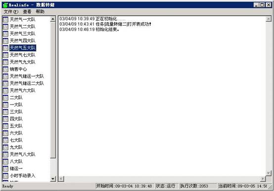數(shù)據(jù)轉(zhuǎn)儲(chǔ)的運(yùn)行界面分為兩個(gè)部分:左側(cè)為各個(gè)數(shù)據(jù)表的名稱,右側(cè)為信息顯示窗口。