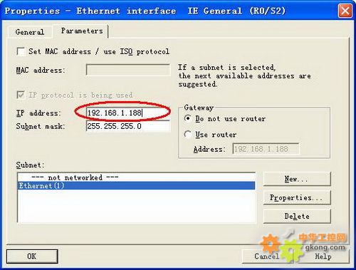 4、 繼續在右面Catalog中選中SIMATIC PC Station\CP Industrial Ethernet\IE General\SW6.2(任意版本),然后拖拉到左面PC機架的2號槽,在彈出的以太網接口屬性對話框中點擊New按鈕新建以太網網絡,然后將IP地址設置成BCNet-S7MPI的IP地址。