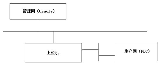 上位機系統采用雙網卡的形式連接關系數據庫(管理網)及下位機(生產網),結構如下:
