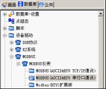 打開紫金橋組態軟件的數據庫選項卡,找到MODBUS儀表項: