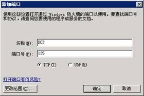 DCOM是基本遠程過程調用(RCP)服務實現的,因此要通過DCOM實現遠程通訊必需啟動RCP服務,并將它使用的端口添加到Windows防火墻的例外中。在例外選項卡中點擊“添加端口”按鈕,打開“添加端口”對話框: