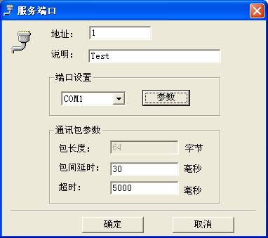 注意串口參數要與服務器端指定的串口參數一致,否則將無法通信。
