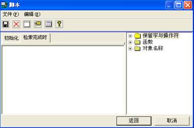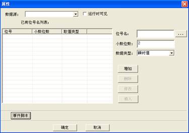 該組件通常運(yùn)行時(shí)是隱藏的。可以在屬性設(shè)置對話框中增加所需查詢的歷史點(diǎn)(可以同時(shí)查詢多個(gè))。通過點(diǎn)擊“事件腳本”,可以在此編寫所需的腳本語句,如圖所示:
