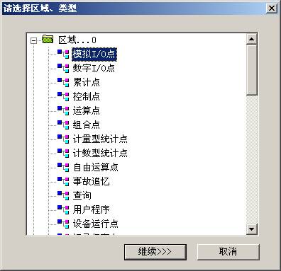 選擇“模擬I/O點(diǎn)”并點(diǎn)擊“繼續(xù)”按鈕,會(huì)彈出如下圖所示的對(duì)話框: