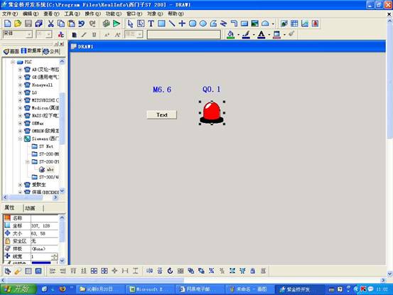完成數據庫點組態后,進行操作界面組態,在畫面DRAW1上建立一個開關按鈕和一個指示燈。開關按鈕與數據庫中點M6_6連接,指示燈與數據庫中點DO_1連接。如圖7所示