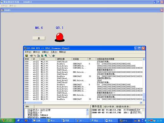 所有組態完成后點擊“運行”按鈕菜單欄上的一個指向右側的綠色箭頭圖標,如果打開紫金橋軟件的西門子200系列PPI通訊程序可以看到發送和接收的數據不斷滾動,并由“采集成功”字樣,證明通訊成功。如圖8所示