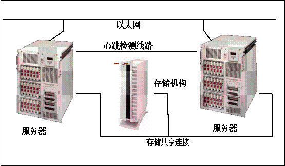 圖中的兩臺服務器分別具有一個本地盤用于安裝操作系統。服務器中分別安裝由兩塊網卡,其中一組網卡用于網絡服務的提供,另一組網卡通過一條心跳網線構成了一個內部互連的高速網絡,這個高速網絡是用于兩臺服務器之間的信息傳遞。所有要求維護高可用性的數據和應用程序代碼都存儲在共享的存儲設備中,這也是該方案的關鍵部分。兩臺群集服務器之間通過專用心跳檢測線路連接在一起,必須保障這條專用心跳檢測線路的可靠,他是整個群集服務器可靠工作的基礎。群集服務器之間通過這條線來傳送信息,判斷是否其中一個服務器出現了故障,從而進行工作切換。