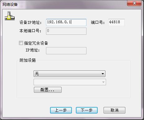 輸入與計算機(jī)連接的PLC以太網(wǎng)口IP地址和端口號,點擊“下一步”按鈕。