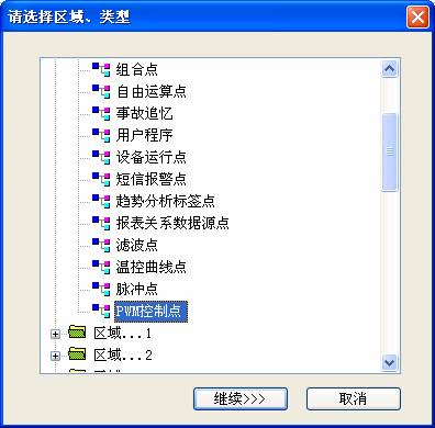 打開工程,把導航器切換到”數據庫”頁,進入“點組態”,并且打開點組態編輯器,在新建數據點時選擇“PWM控制點”。