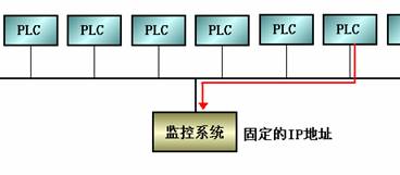現在假設有幾十臺PLC分布在比較廣闊的地方,比如分布在全國的若干個省,這些PLC都可以連接到以太網上,但是由于每一臺PLC都沒有一個固定的IP地址所以,監控系統無法直接訪問PLC從而采集到數據。按照傳統的方式需要給每個PLC分配固定的IP地址,這樣得需要分配幾十個固定IP地址,增大了系統的復雜度也增大了成本。如果能夠給監控系統所在的計算機分配一個固定的IP地址,同時把它虛擬成一個Modbus的設備,那么在其他的幾十臺上就可以使用現成的Modbus通訊模塊,直接把數據寫入監控系統中。這樣一來只需要分配一個固定的IP地址即可解決數據采集問題。如下圖所示: