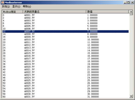 其中左側為變量配置顯示區,它分為三列,分別是序號、數據庫位號和Modbus地址。后兩列的意義是把某一個數據庫位號和一個Modbus地址建立映射關系。