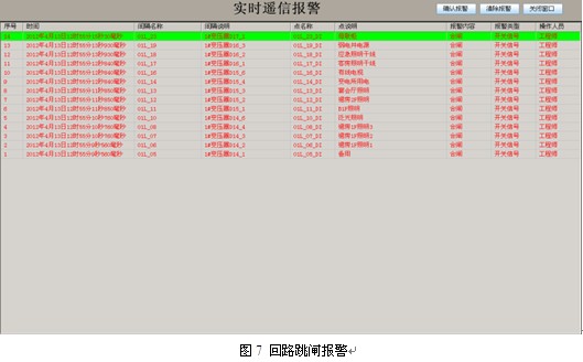 主要用于查看歷史報警信息;幫助用戶進行事故查詢與追憶;支持歷史查詢,打印等功能。實時報警信息會即時彈出,提醒用戶所進行的操作。并對所有操作具有自動事件記錄功能。如圖7所示。