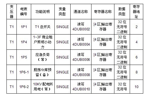 根據環智國際大廈高低壓配電系統一次圖確定需要進行監控的回路,并根據現場配電柜安裝的實際位置合理確定通訊線纜的走向及通訊端口的分配,如下表所示(部分):