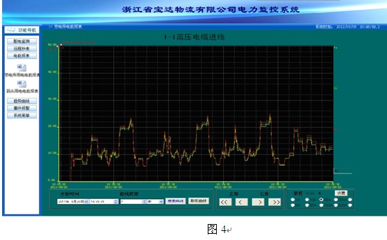 負荷趨勢曲線提供了某一段時間內該回路的負荷趨勢,方便管理員掌握用電設備的運行狀況,對存在故障隱患的設備及時提出整改,對不合理用電單位提出科學合理的改進。如圖4所示: