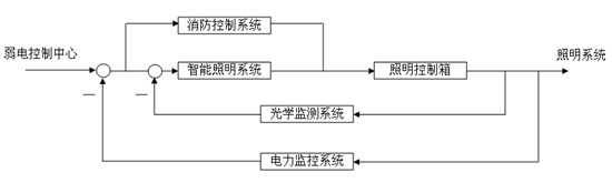 當(dāng)場(chǎng)館在承載比賽活動(dòng)時(shí),場(chǎng)地照明的金鹵燈全開,隨著比賽的進(jìn)行,管理人員需通過智能照明系統(tǒng)來實(shí)時(shí)調(diào)整場(chǎng)地內(nèi)的亮度、照度及灰度等參數(shù),并通過光學(xué)監(jiān)測(cè)系統(tǒng)來觀察調(diào)整效果。與此同時(shí),場(chǎng)地照明全開勢(shì)必會(huì)造成配電系統(tǒng)的高負(fù)荷運(yùn)轉(zhuǎn)及三相不平衡,需要通過電力監(jiān)控系統(tǒng)反饋配電系統(tǒng)運(yùn)行負(fù)荷率和用電平衡參數(shù),使得管理員可以對(duì)場(chǎng)地照明進(jìn)行預(yù)先調(diào)整,防止配電系統(tǒng)的運(yùn)行進(jìn)入危險(xiǎn)區(qū),損壞配電設(shè)備和用電設(shè)備。賽事舉辦期間體育場(chǎng)幾個(gè)弱電子系統(tǒng)聯(lián)動(dòng)工作方框圖如下: